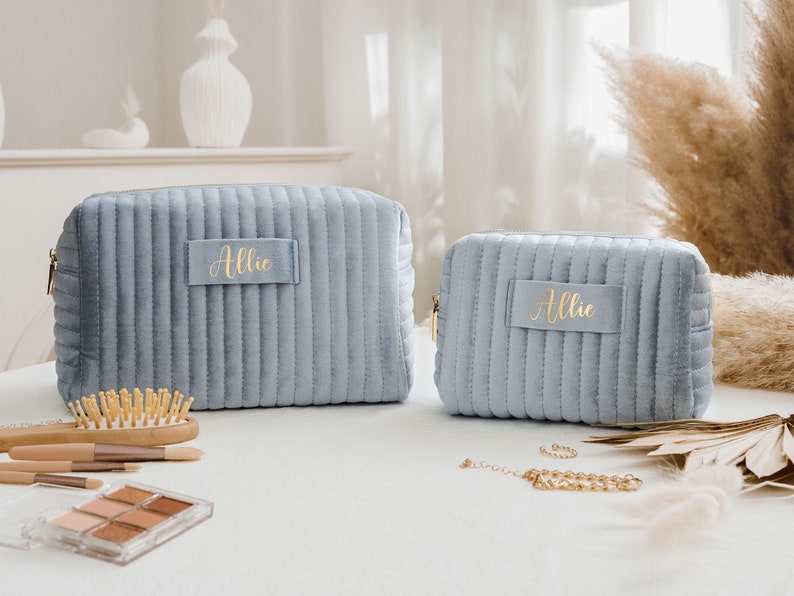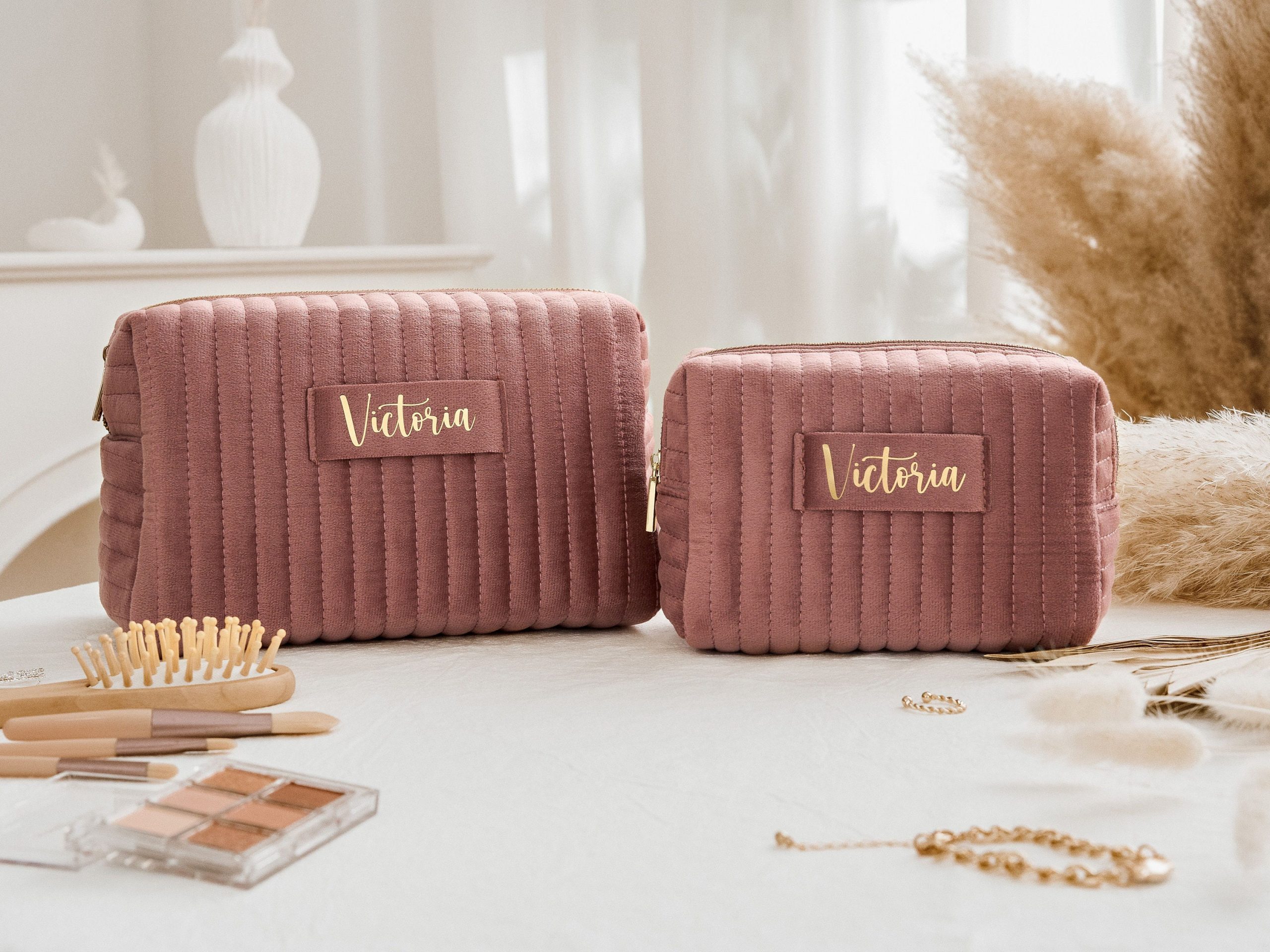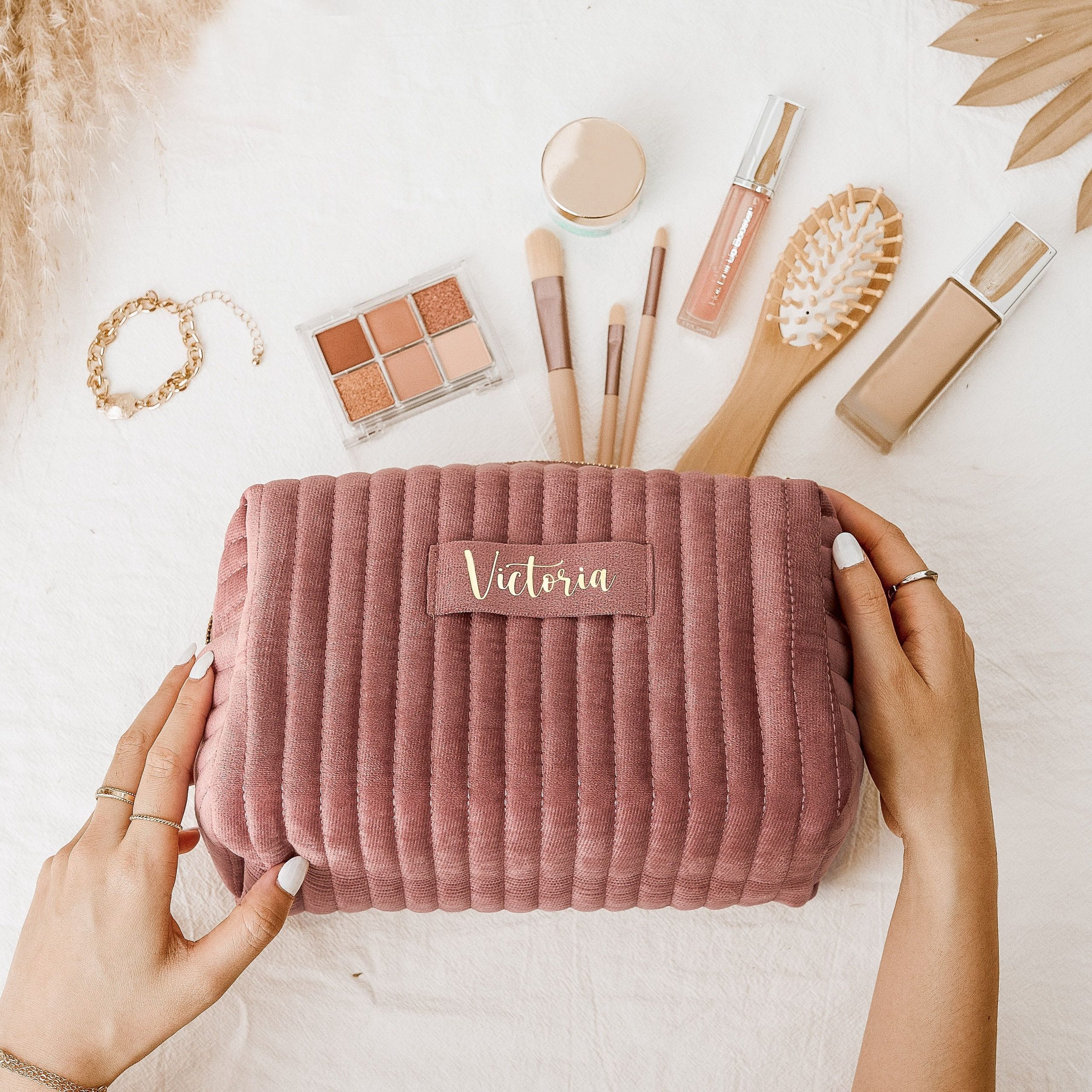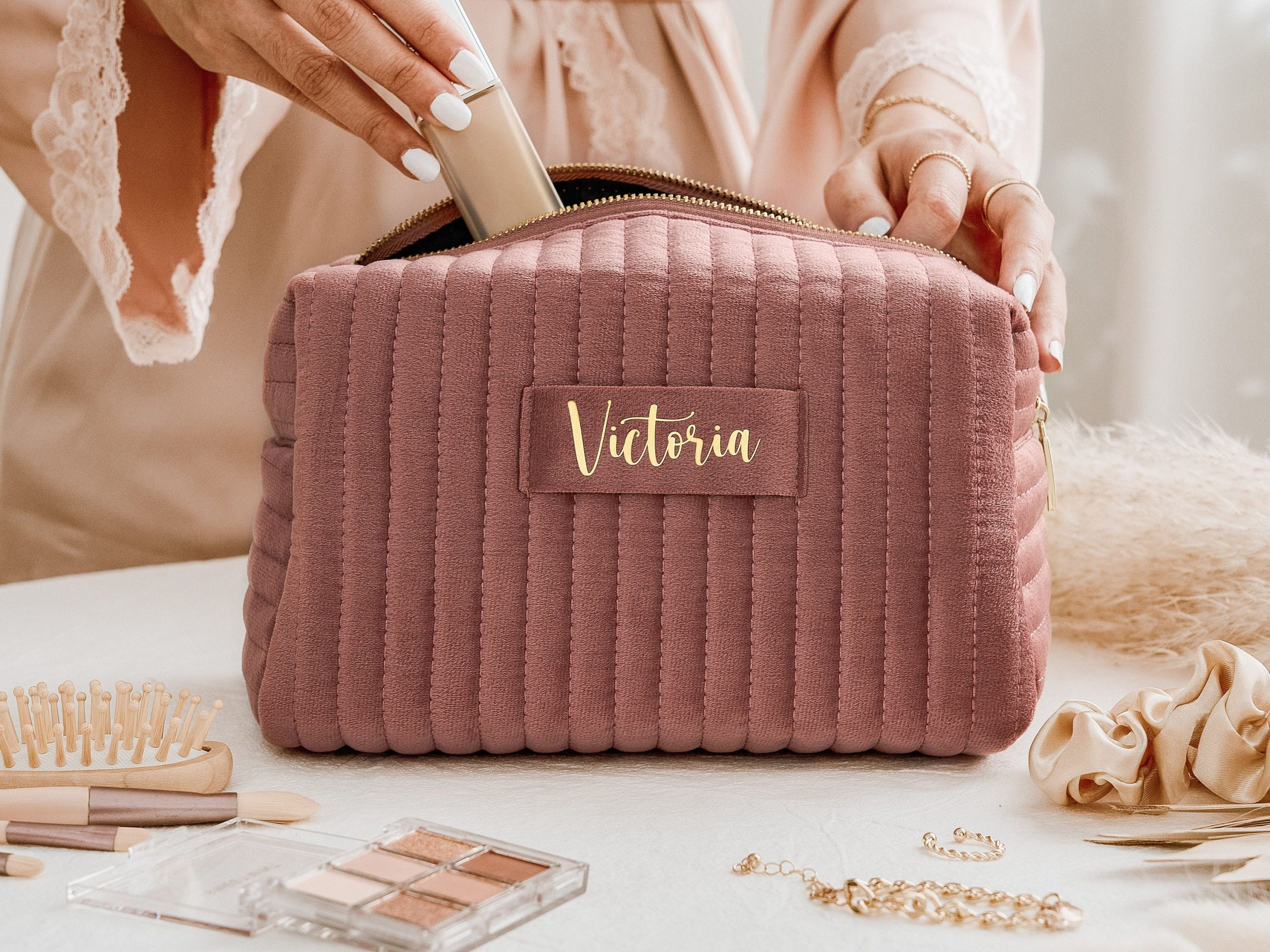 Personalized Makeup Bag, Custom Bridesmaid Gift, Velvet Cosmetic Bag, Travel Toiletry Bag, Wedding Gift, Gift for Her, Mother's Day Gift
