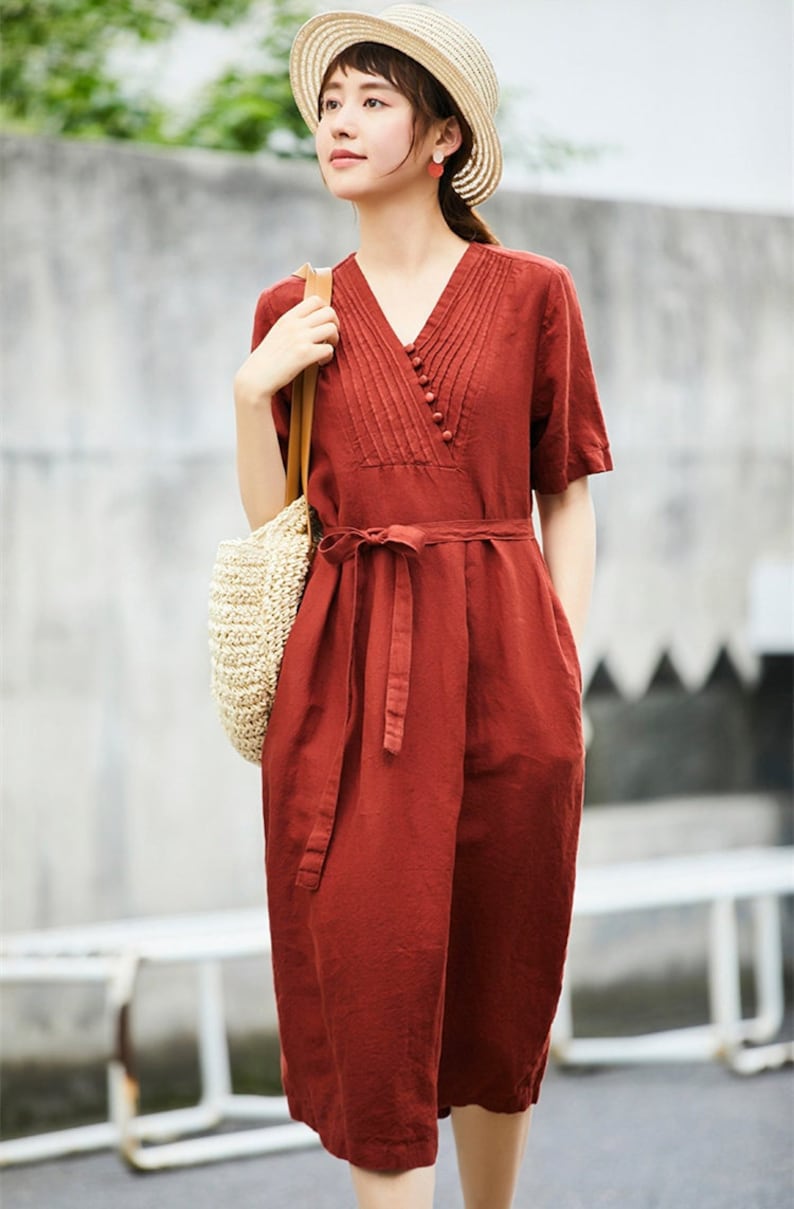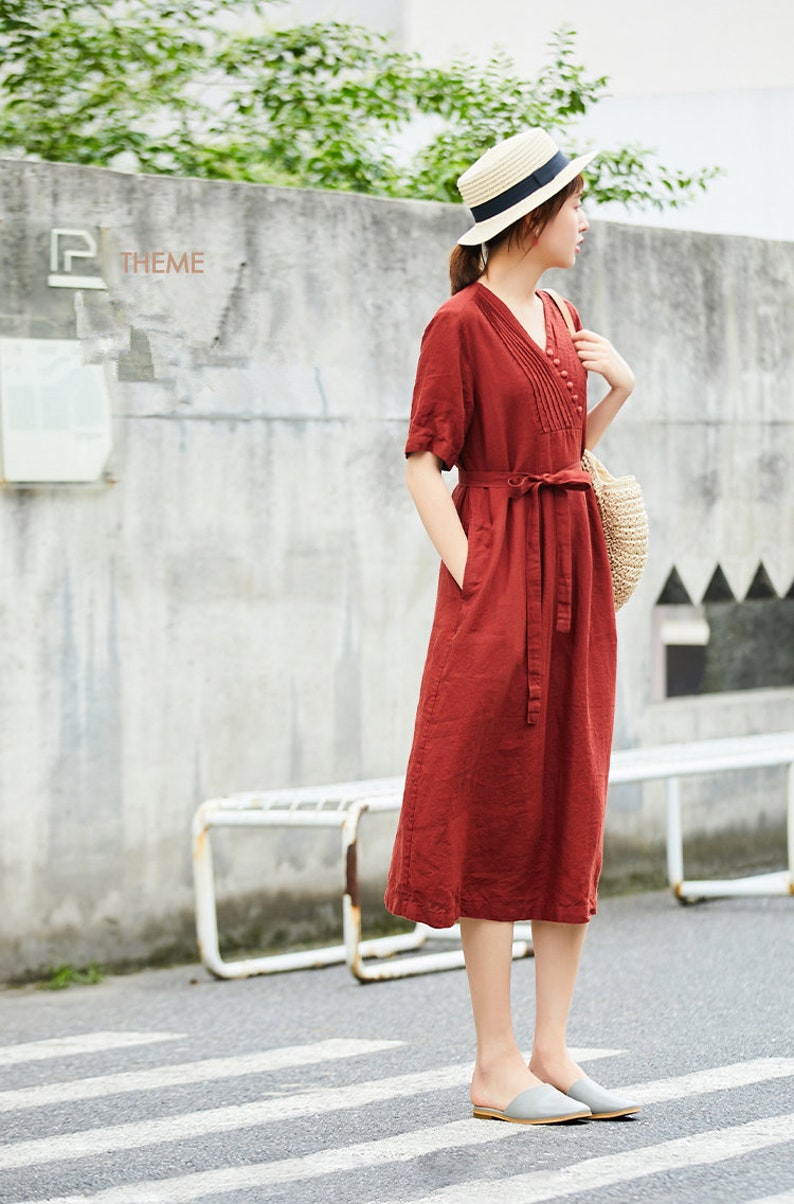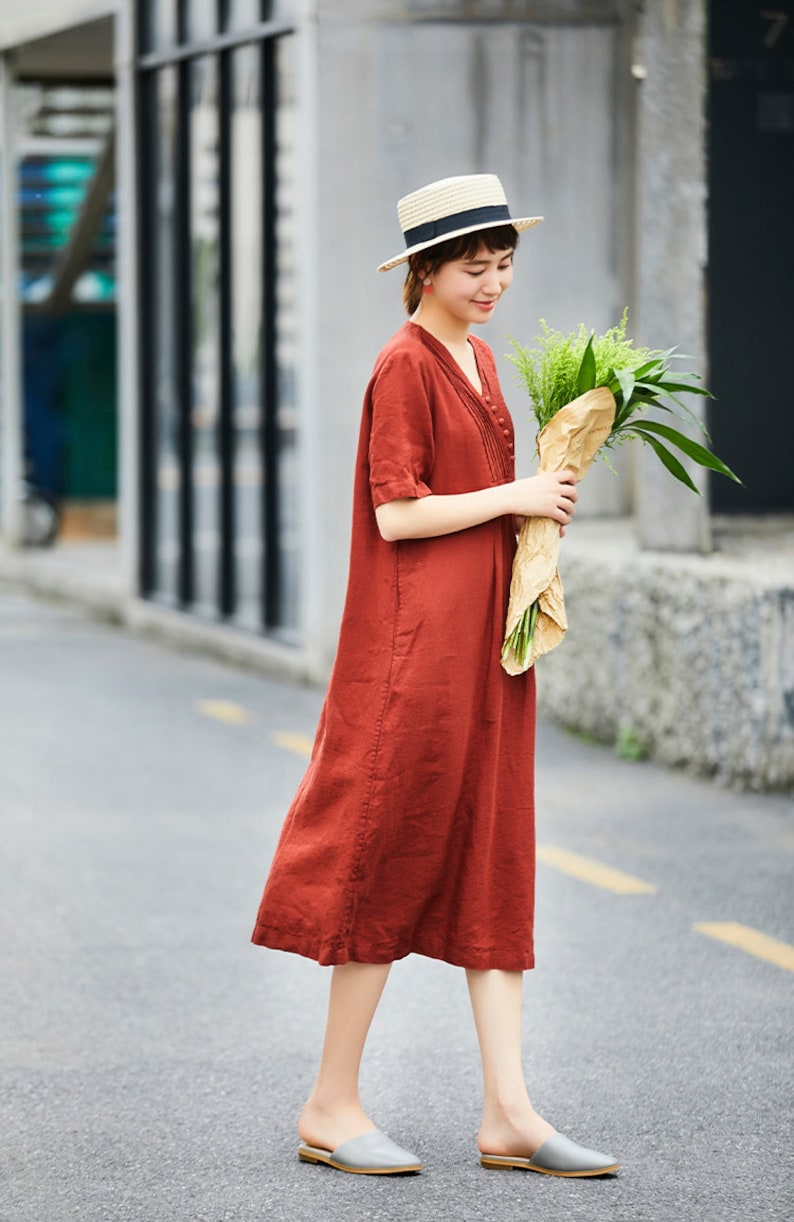 Summer linen dress for women, linen midi dress, loose casual soft custom handmade linen tunic shift dress robes, plus size clothing boho N39