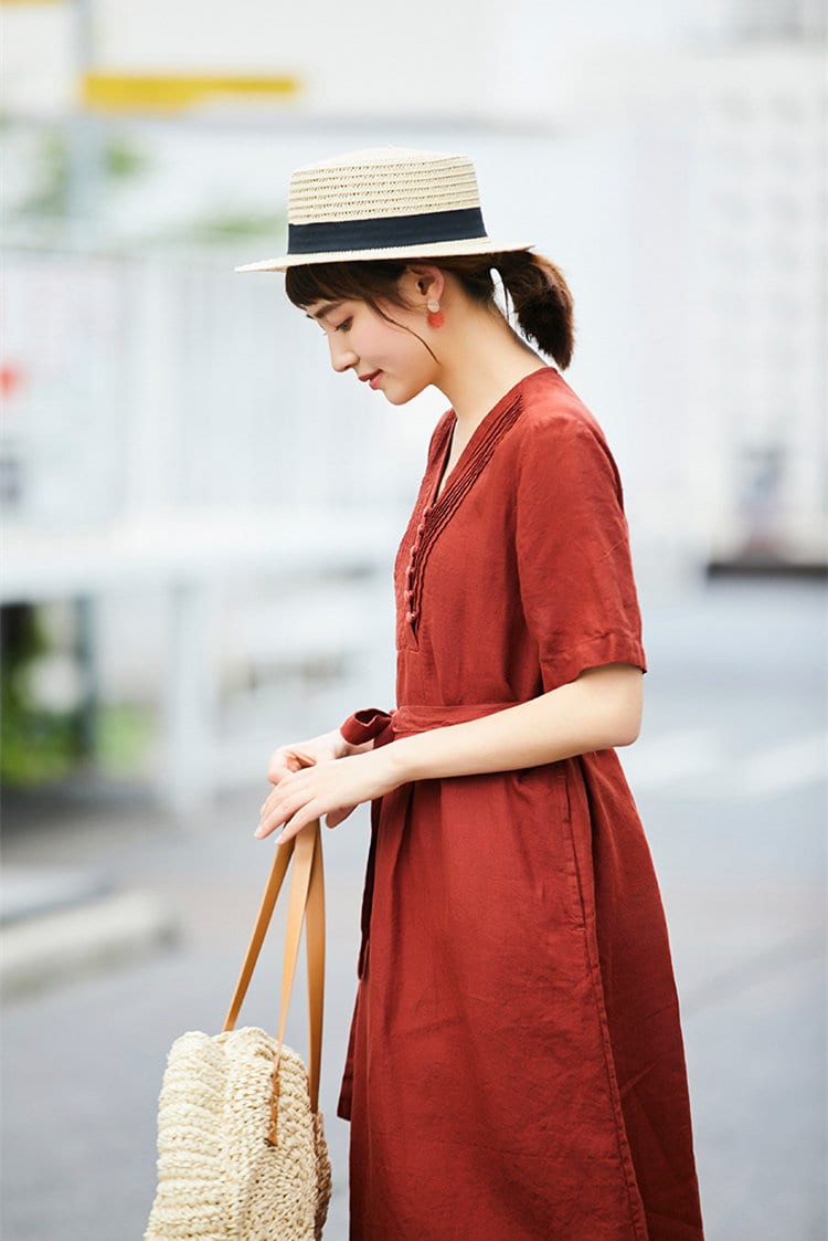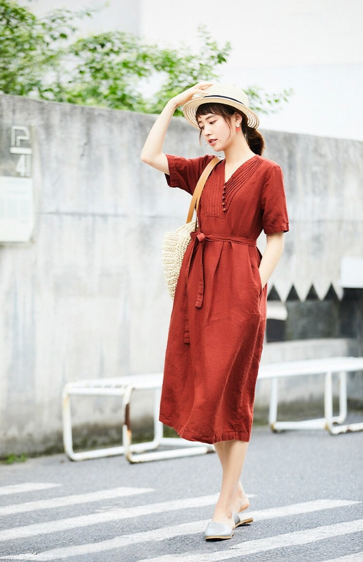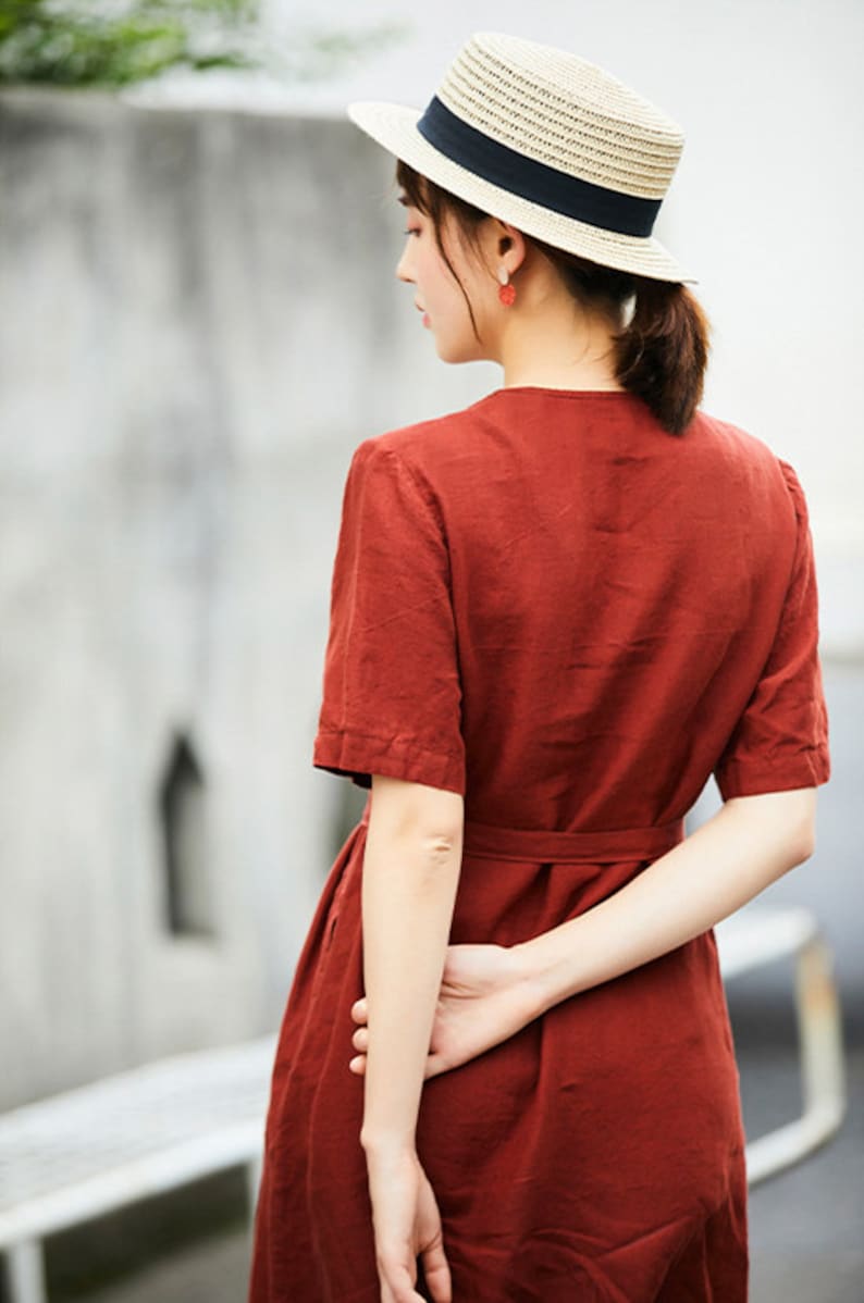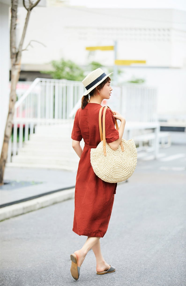 Summer linen dress for women, linen midi dress, loose casual soft custom handmade linen tunic shift dress robes, plus size clothing boho N39